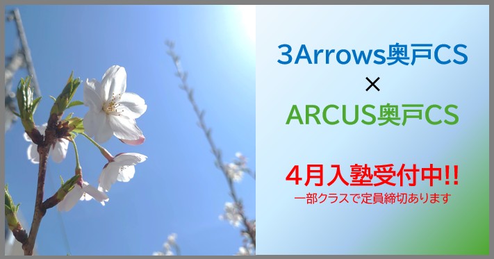 2026/04/01New!3Arrows奥戸CS新中学1年生、塾デビュー受付中!! -