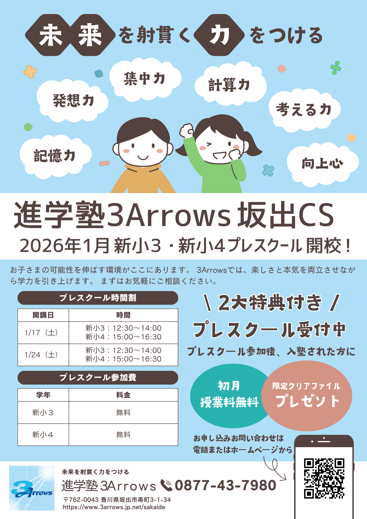 坂出教室では プレスクール(無料体験講座) を実施いたします。