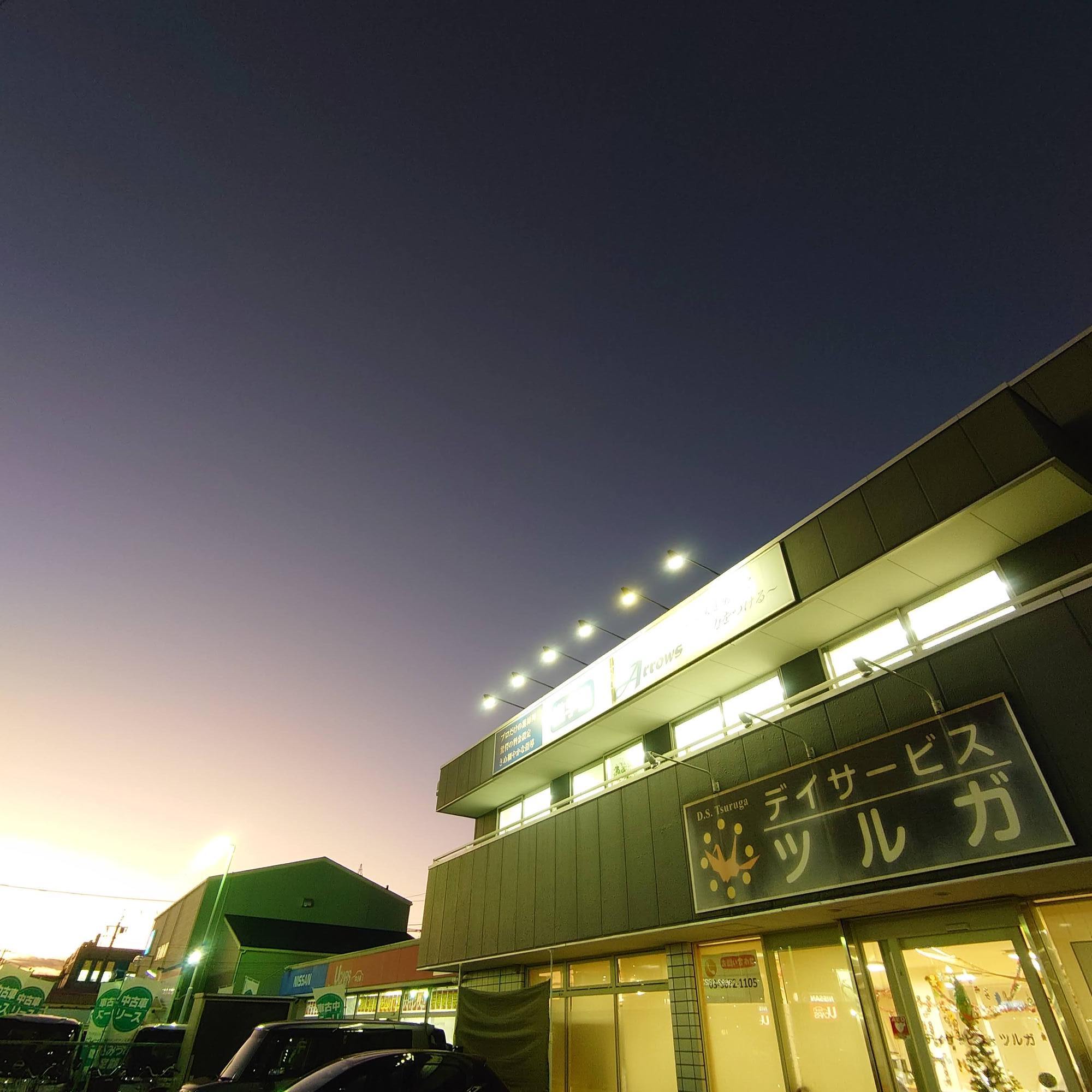 ビル1階に入る「デイサービス ツルガ」さんの灯りがとても温かく感じます。
