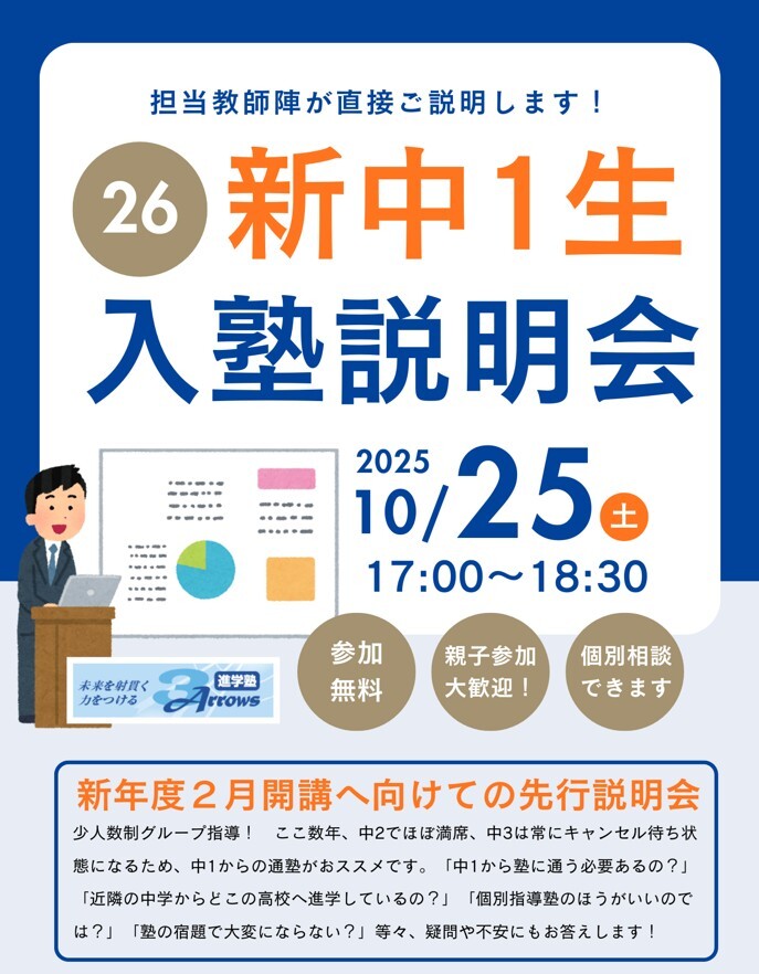 ■新中1入塾説明会(2026年度 新中学1年生対象)