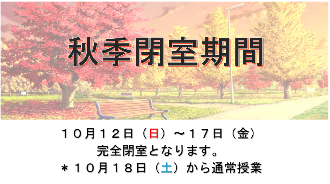 秋季閉室期間のお知らせ